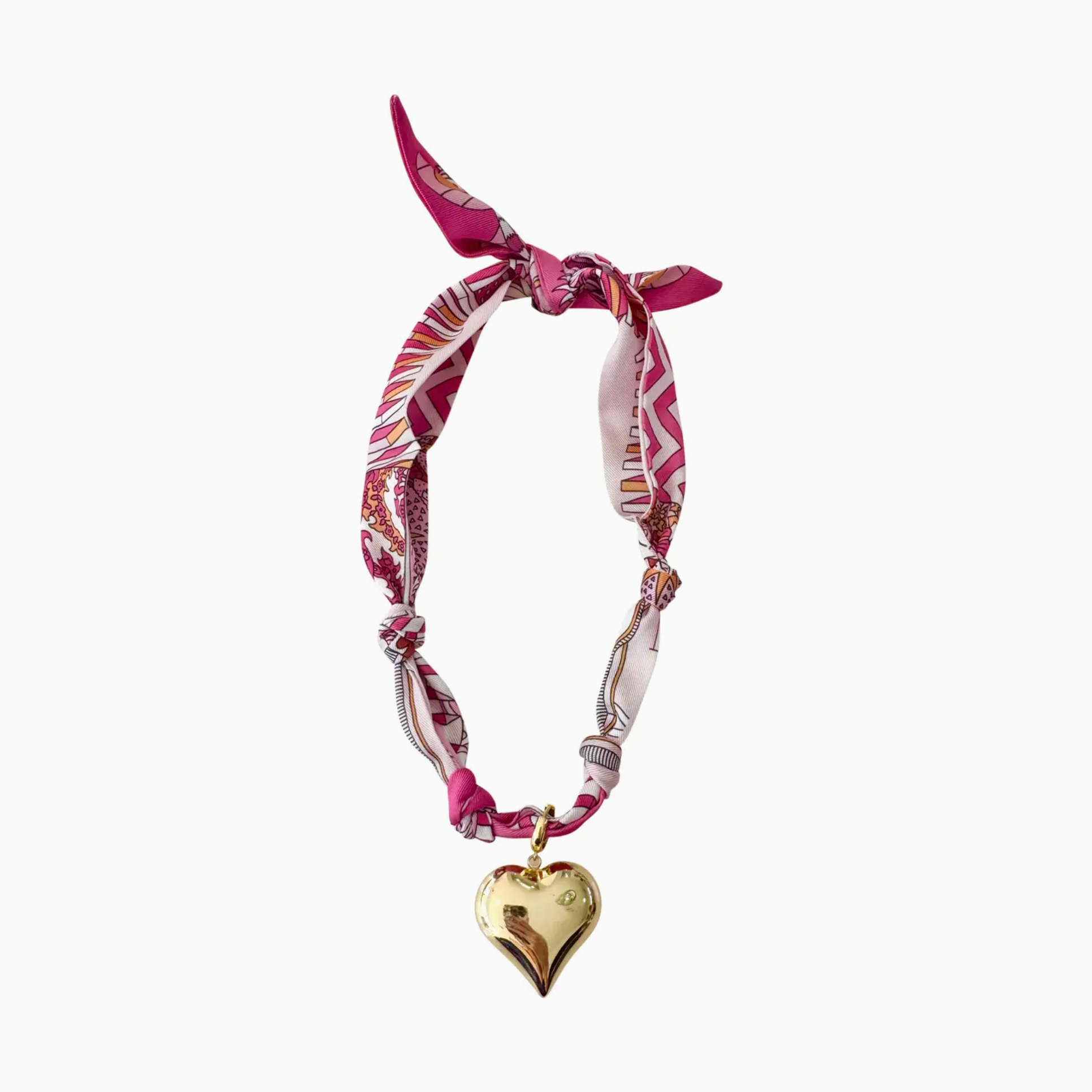 Chic and versatile, the Cassidy Scarf Necklace is a stylish blend of fashion and function. This adjustable satin scarf necklace features an interchangeable 18k gold-plated charm, allowing you to customize your look effortlessly. Perfect for travel, dinner parties, or adding a sophisticated touch to any outfit.