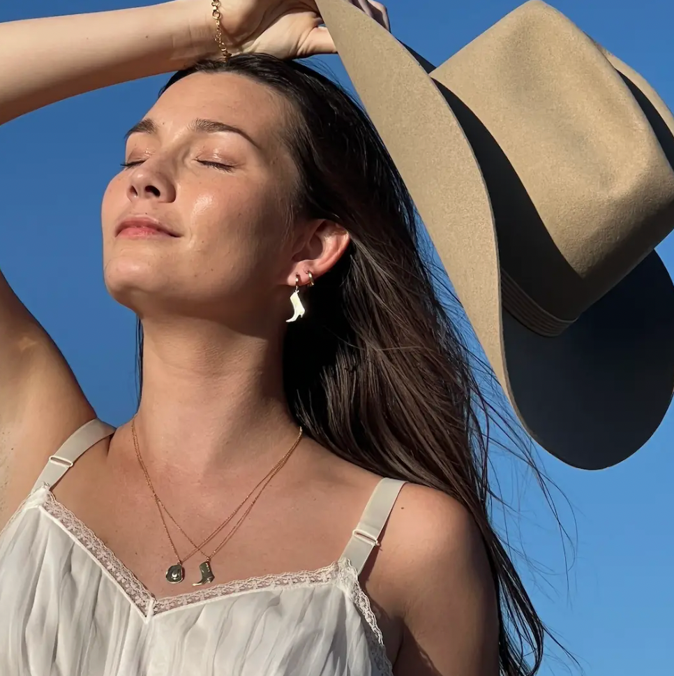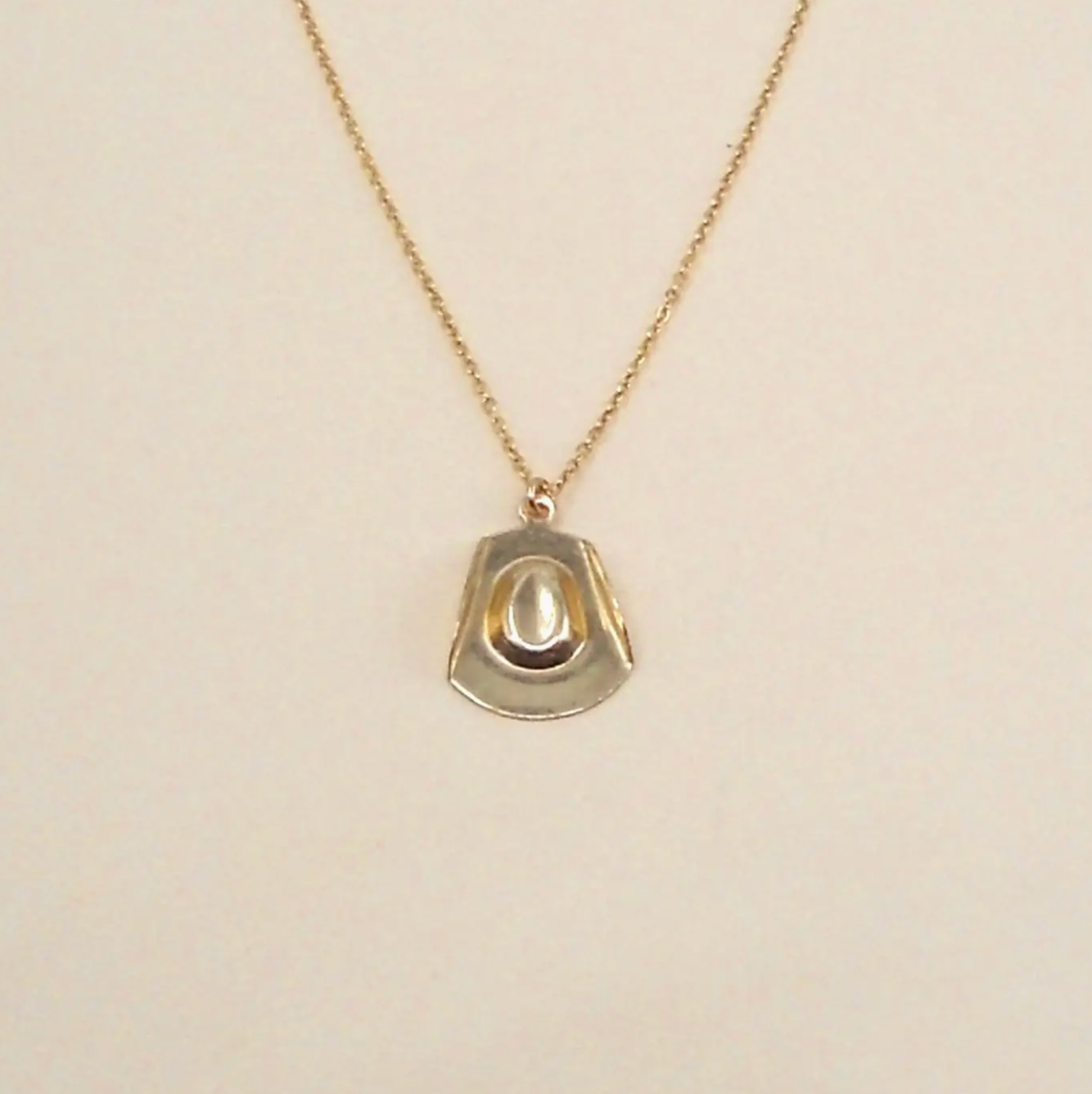 Material: Gold filled Length: 19" chain Charm: 1" gold filled cowboy hat Made by hand in Southern California