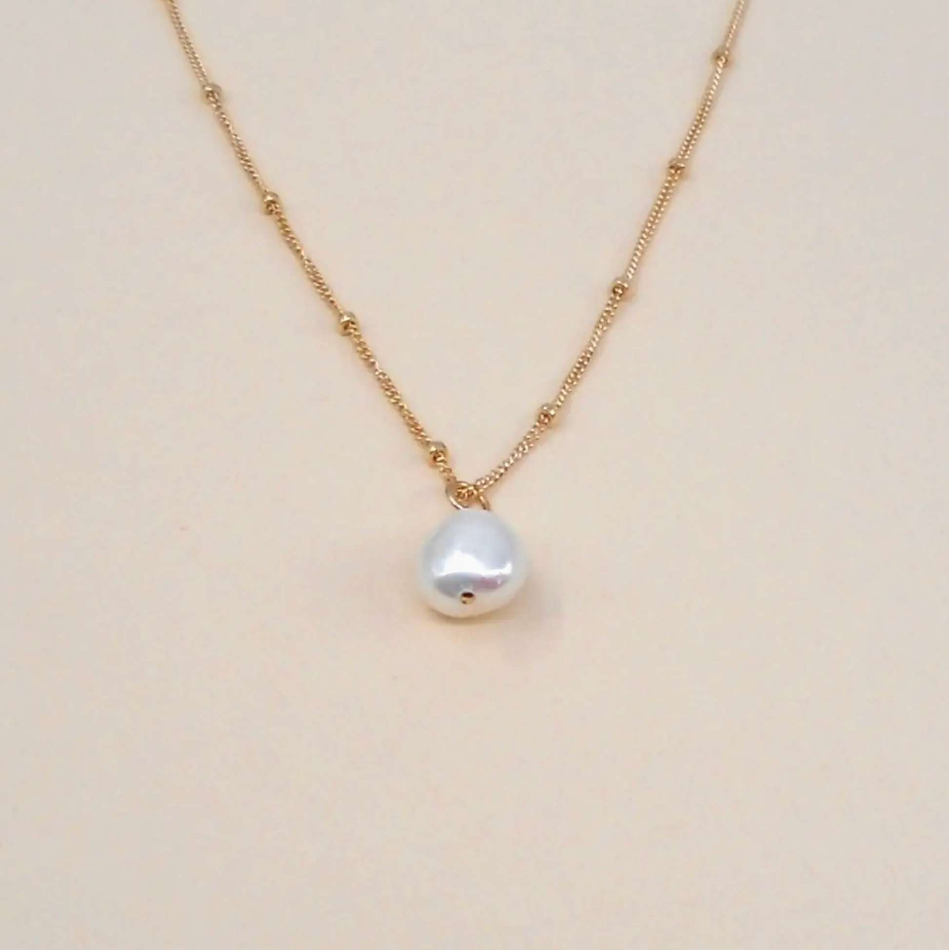 Material: Gold filled & fresh water pearl Length: 15" chain with a 1.5" extender *Size and shape of pearl may vary Made by hand in Southern California