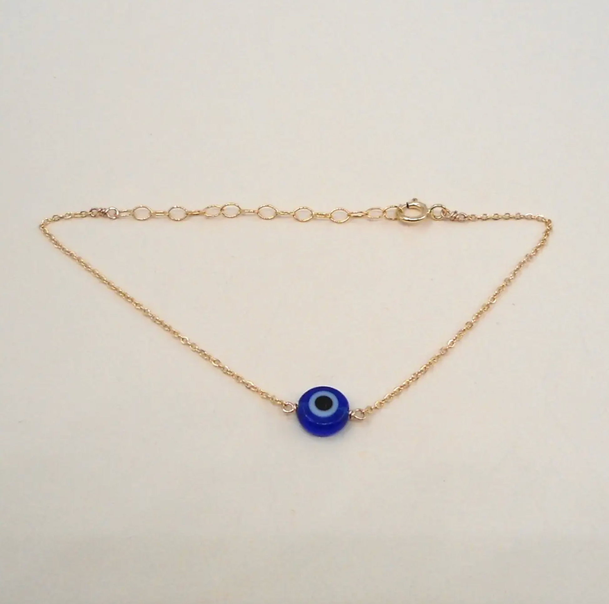 Material: Gold filled Length: 5" chain with a 1.5" extender Charm: .25" glass bead Made by hand in Southern California