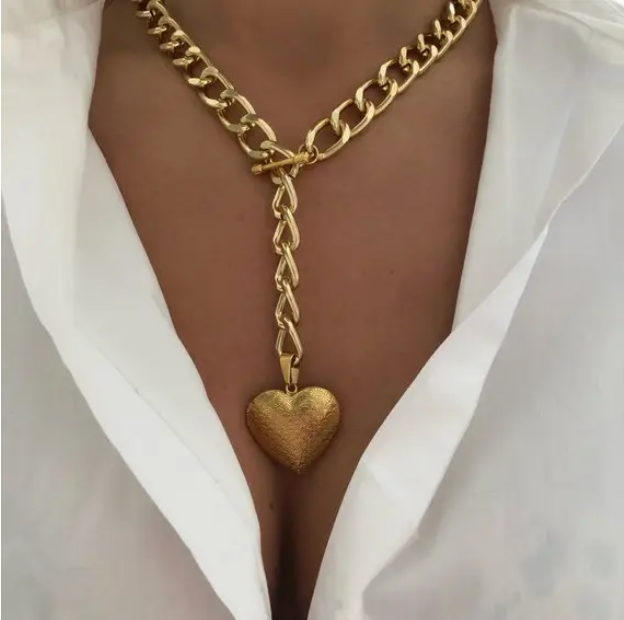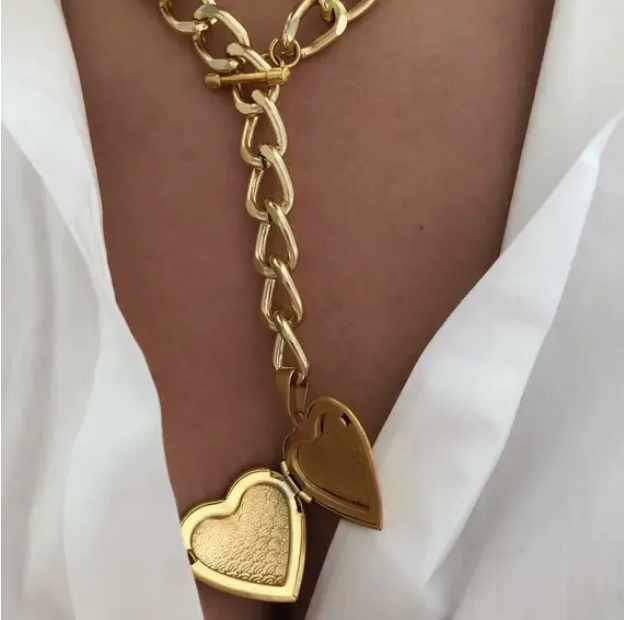 Gorgeous heart locket, statement necklace with a 21.5" adjustable chain.