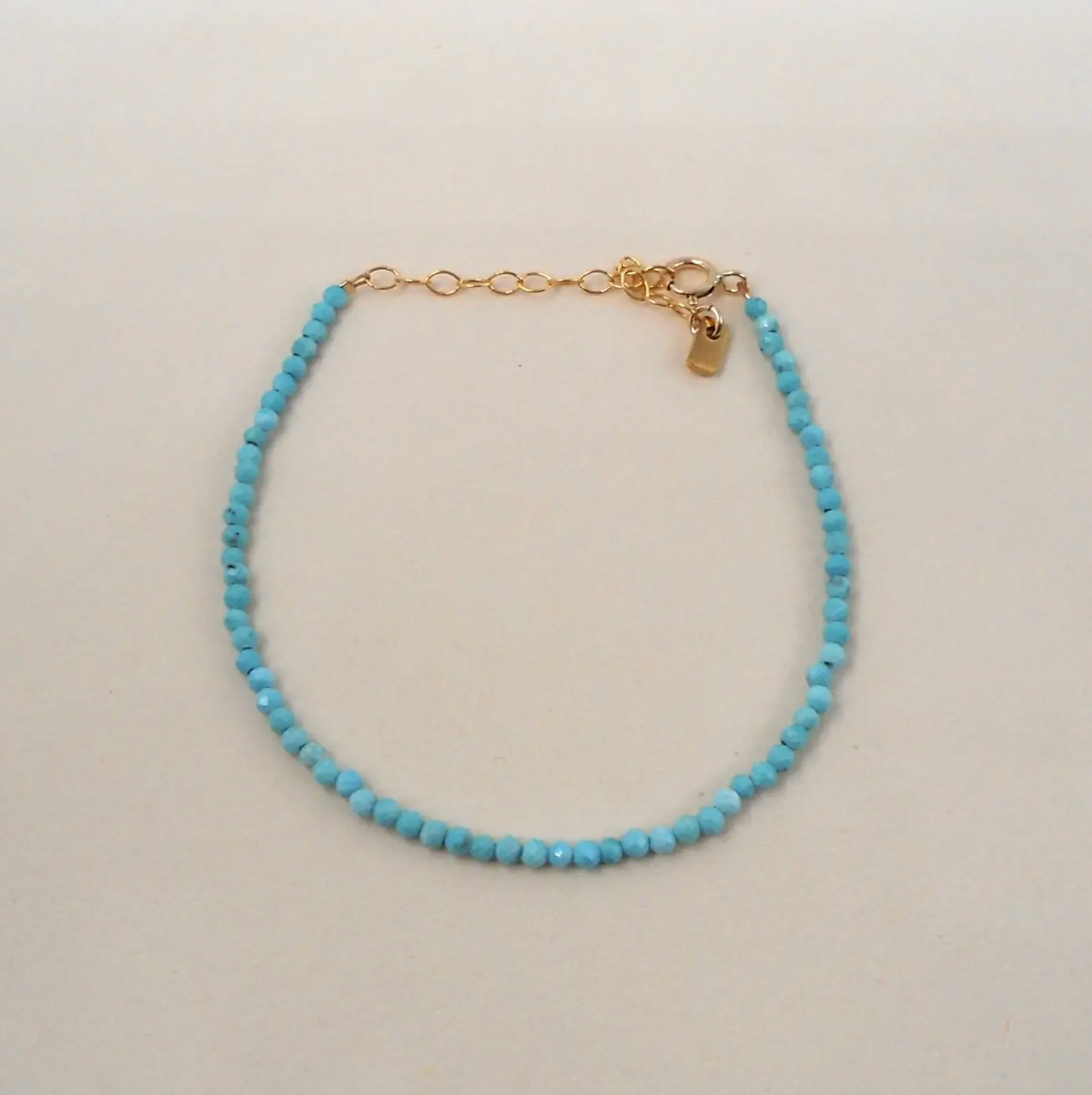 Material: Turquoise gemstones Length: 5" chain with 1.5" extender *Size and shape of gemstones may vary Made by hand in Southern California