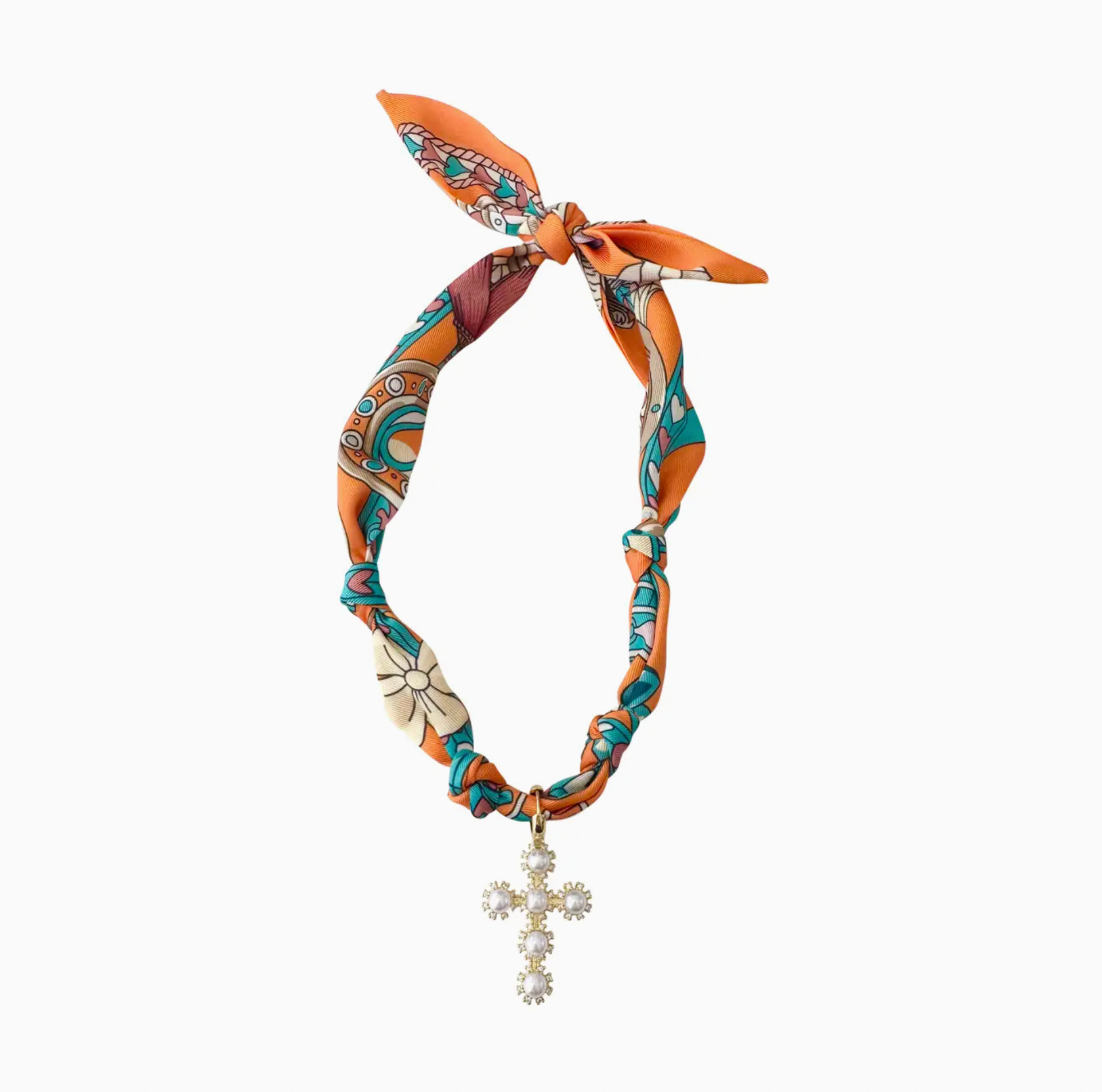 Elegant and timeless, the Palmas Scarf Necklace blends sophistication with versatility. This adjustable satin scarf necklace features an interchangeable 18k gold-plated pearl cross charm, adding a refined and meaningful touch. A best-selling, handmade design, it’s perfect for layering or wearing solo, making it a standout accessory for any occasion.