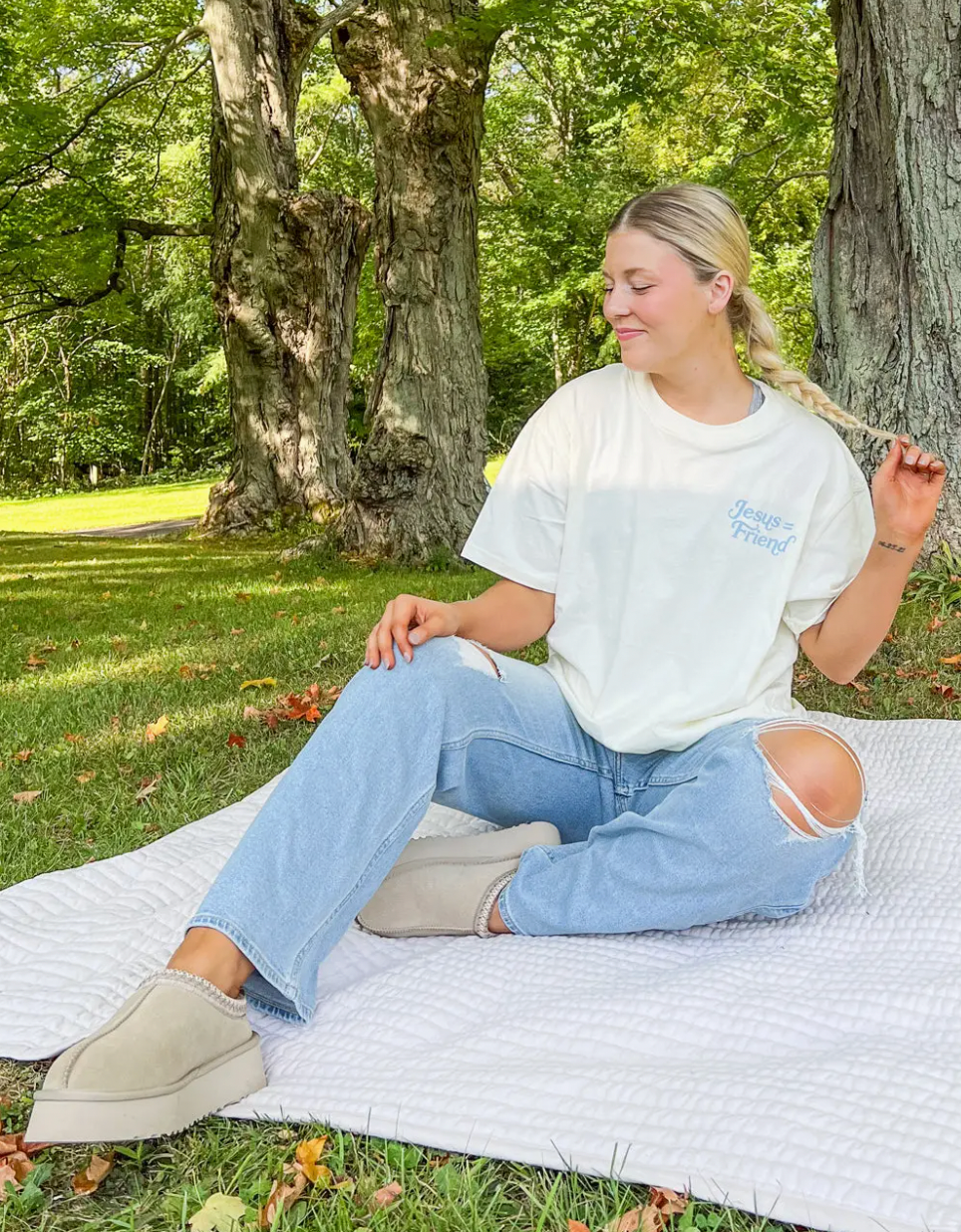 Size: Model is 5'10" and wearing a size Medium. Fit: Oversized, Unisex Fit Color: Ivory Composition: 100% Cotton Features: Super Soft, Pre-Shrunk